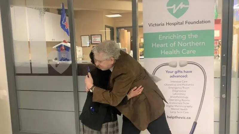 Sep 27, 2019 Dr. Lalita Malhotra exhanges a hug with Victoria Hospital Foundation Board Chair Lyle Karasiuk. (Nigel Maxwell/ paNOW Staff)