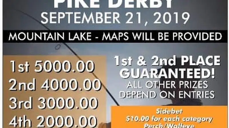 The Stanley Mission Pike Derby will be September 21 at Mountain Lake.There are amazing prizes and only a $100 entry fee.See the poster for full details.