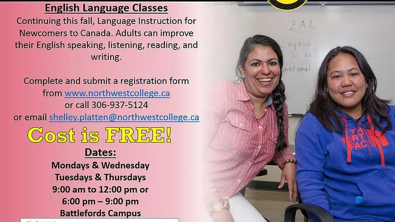 Registration is now open for part-time English as an Additional Language classes for adults starting September (no charge.Apply now at NorthWestCollege.ca or call 306-937-5100 for more information.