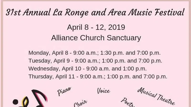 The La Ronge and Area Winter Festival Will be April 8 - 12 at the Alliance Church Sanctuary with the Outstanding Performances Concert Friday, April 12.See the poster below for full details.