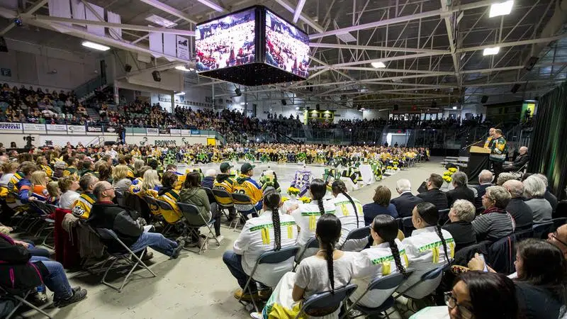 Apr 06, 2019 Community members and dignitaries join with family members of the lost and injured during the Humboldt Broncos First Year Memorial service at Elgar Petersen Arena in Humboldt, SK on Saturday, April 6, 2019. (Saskatoon StarPhoenix/Liam Richards)