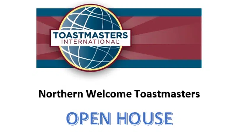 Northern Welcome Toastmasters is having an open house at the Alex Robertson Public Library on Monday, March 25 at 6:45 pm and you are invited!The meeting's theme is public speaking.