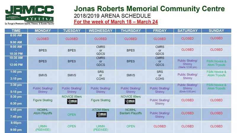Rink Schedule until March 24
