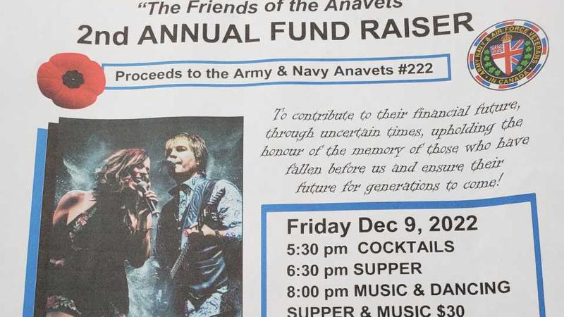 The ANAVETS 2nd Annual Fundraiser will be Friday, December 9 with a full evening of good food and entertainment.See the poster for details.
