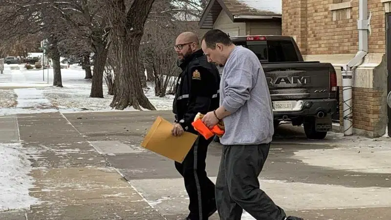 Oct 29, 2019 Tyrone Nontell being led away in handcuffs from Prince Albert Court of Queen's Bench. (Nigel Maxwell/paNOW Staff)