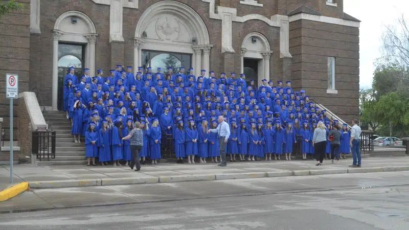 Jun 25, 2019 St. Mary's graduating class of 2019 pose for a group photo Tuesday afternoon. (Michael Joel-Hansen/paNOW Staff)