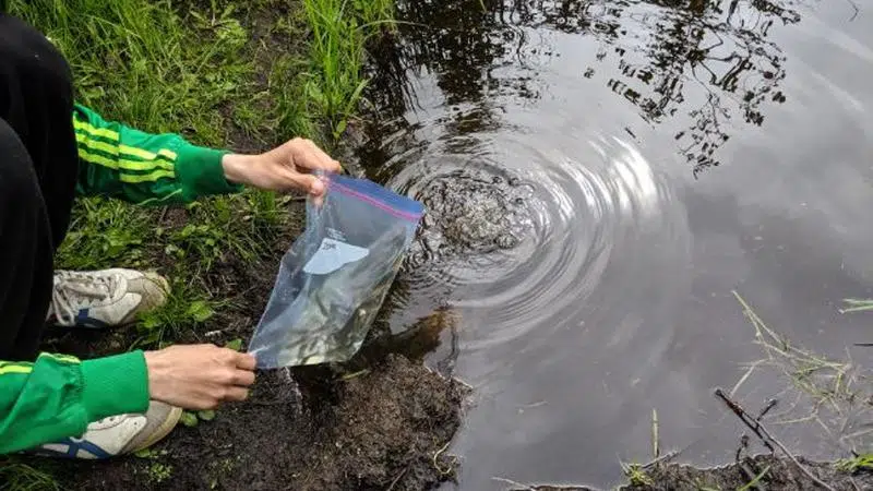 CCHS students release rainbow trout in Downton Lake